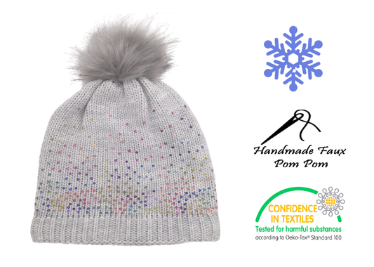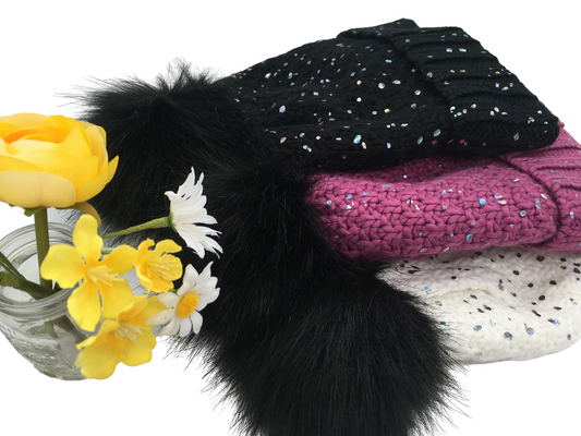 Girls Sequin Knitted Fashion Winter Beanie Hat Winter Warm Hat with Pompom & Acrylic Lining